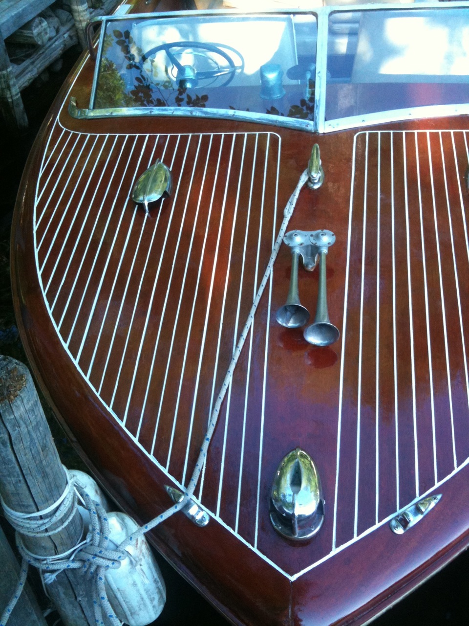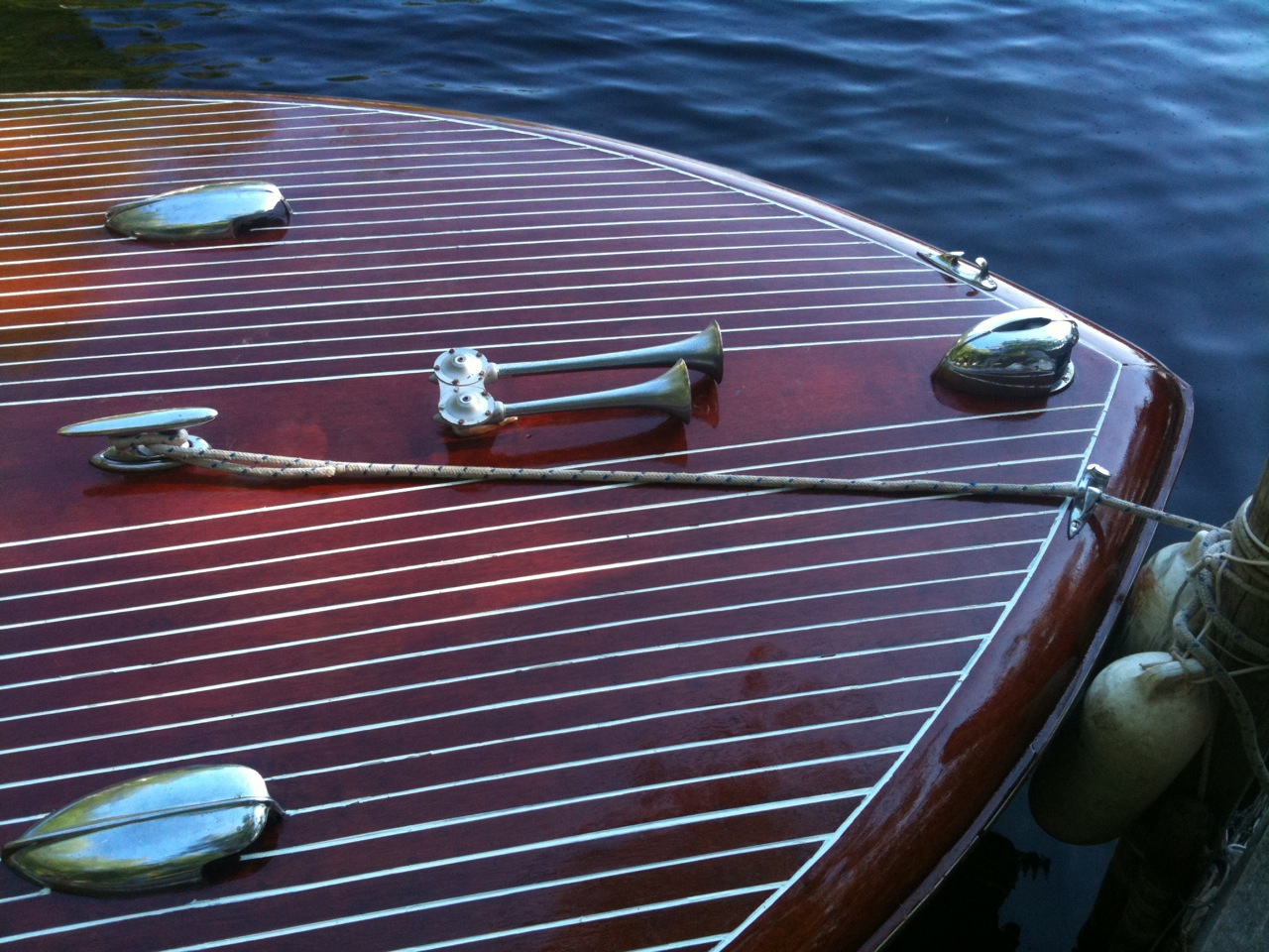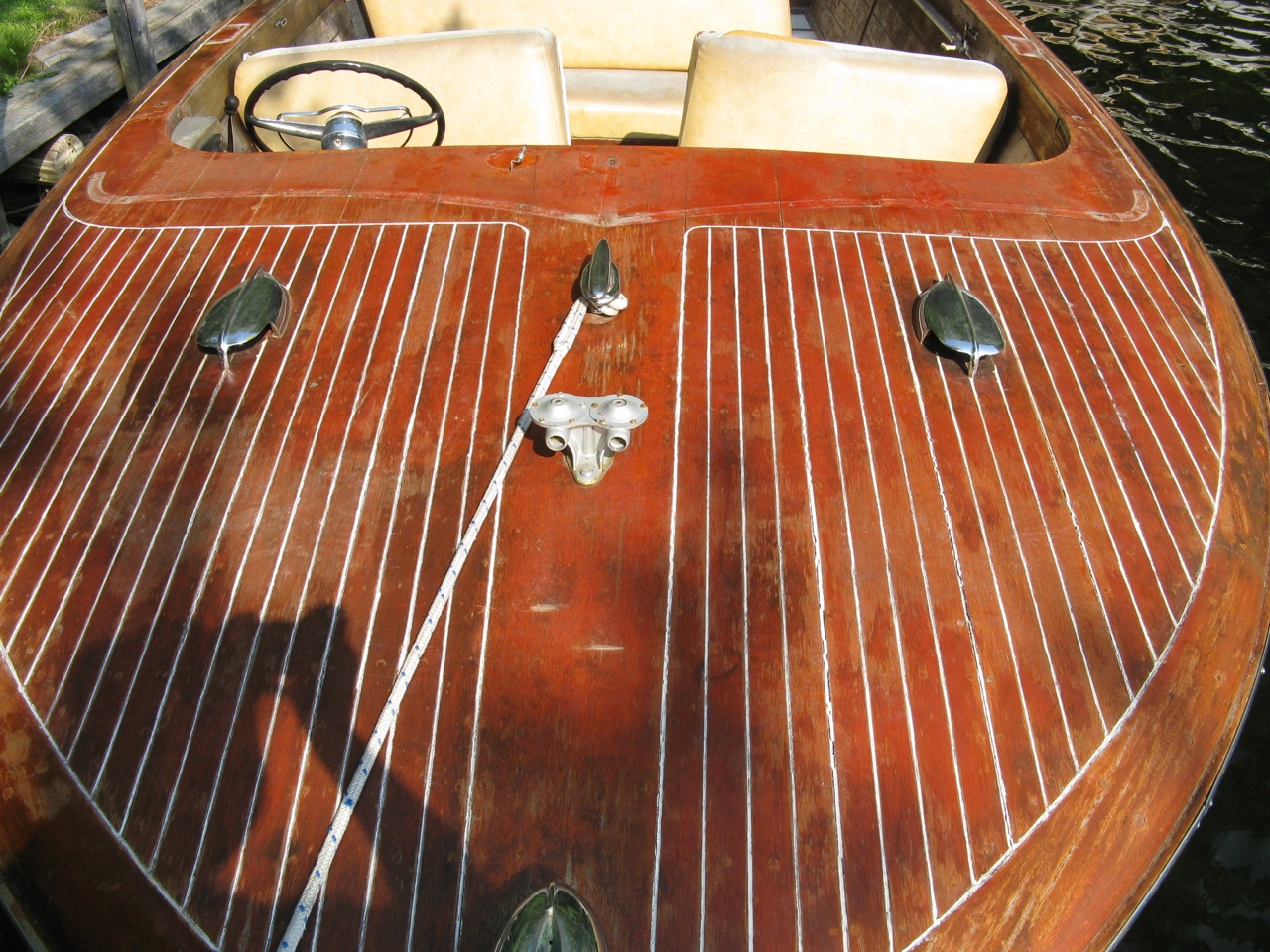 All decks and interior planking stripped, sanded & re-stained. All striping removed and replaced with new seam compound. All woodwork re-varnished. Various fasteners and a pane of window glass replaced as well.